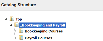 In the example below, Bookkeeping and Payroll indicates the first-level catalog while Bookkeeping Courses and Payroll Courses represent the sub-catalogs.